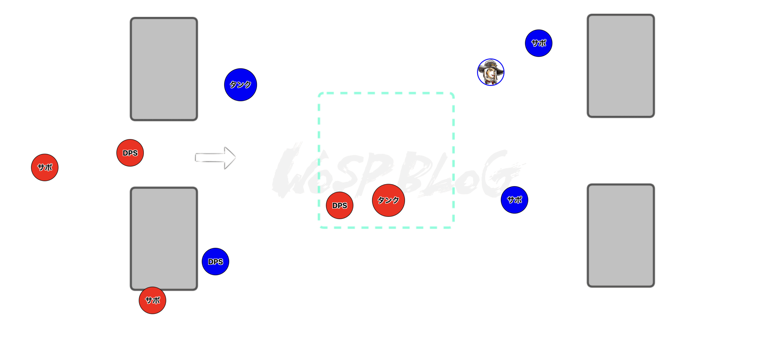 一直線マップでない限り、DPSの片方はタンク系を選択しましょう。